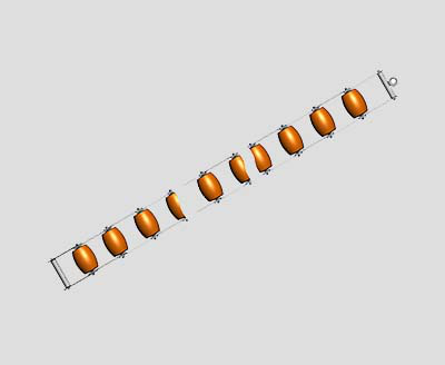此校驗(yàn)裝置采用循環(huán)鏈?zhǔn)浇Y(jié)構(gòu)的組成裝置,鏈碼與皮帶的接觸面設(shè)計(jì)采用60°的牙齒形狀設(shè)計(jì),鏈碼隨皮帶同步進(jìn)行,可精確模擬物料在皮帶上連續(xù)通過(guò)皮帶秤時(shí)產(chǎn)生的計(jì)量效果,精度高,量值傳遞準(zhǔn)確。鏈碼塊采用鑄鋼制造,耐腐蝕,使用壽命可長(zhǎng)達(dá)20年。校驗(yàn)過(guò)程簡(jiǎn)單方便易操作,只需要一位工作人員即可完成。
