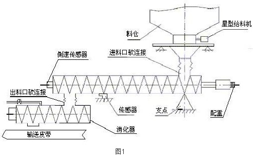 物料由進(jìn)料口經(jīng)螺旋輸送機(jī)輸送到下面連接的計(jì)量絞刀,并通過(guò)安裝在計(jì)量絞刀上的三只拉力傳感器把計(jì)量螺旋完全稱重的重量以正比于稱重載荷的電壓信號(hào)送入控制器,和預(yù)設(shè)的絞刀速度數(shù)據(jù)一起(雙管計(jì)量時(shí),計(jì)量絞刀恒速運(yùn)轉(zhuǎn)向前推進(jìn)物料,即速度信號(hào)為計(jì)量絞刀的設(shè)計(jì)值)。