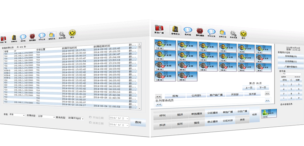 井上設備主要由廣播調(diào)度臺、廣播服務器、交換機、IP電話、語音網(wǎng)關和本地程控交換機組成;其中尋呼器(可選)和廣播對講中端(可選)。