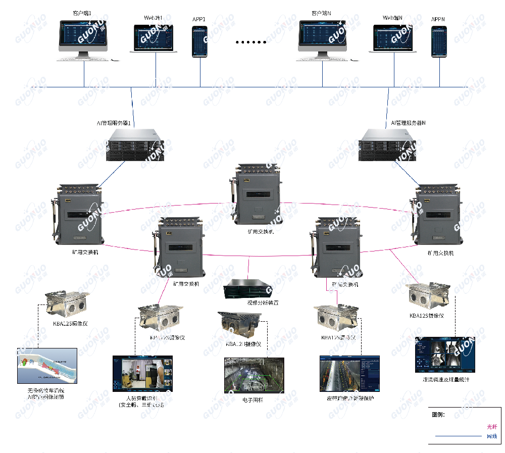 煤礦智能AI視頻監(jiān)控系統(tǒng)基于人工智能技術,自動識別人員違章行為、設備異常狀態(tài)、環(huán)境潛在危險等安全隱患,及時預警與聯動控制,實現監(jiān)控區(qū)域全覆蓋、時間全天候、規(guī)則全統(tǒng)一、效能全提升,為安全賦能、為煤礦增智。