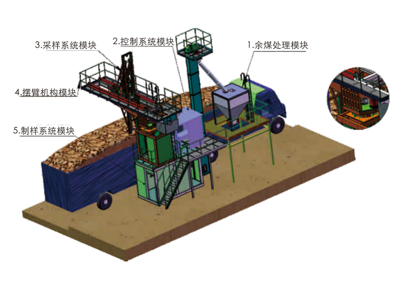實(shí)現(xiàn)全平面、全斷面連續(xù)采樣,計(jì)算機(jī)隨機(jī)選擇采樣點(diǎn),車廂內(nèi)每個(gè)店、每個(gè)層面的樣品都可能被采到;采樣頭為螺旋鉆取式,通過(guò)控制,可實(shí)現(xiàn)任意深度采樣;采用鉆取式采樣頭,動(dòng)作速度快,采樣時(shí)間短,能較好地取得一個(gè)采樣點(diǎn)的全斷面子樣,煤樣更具有代表性。
